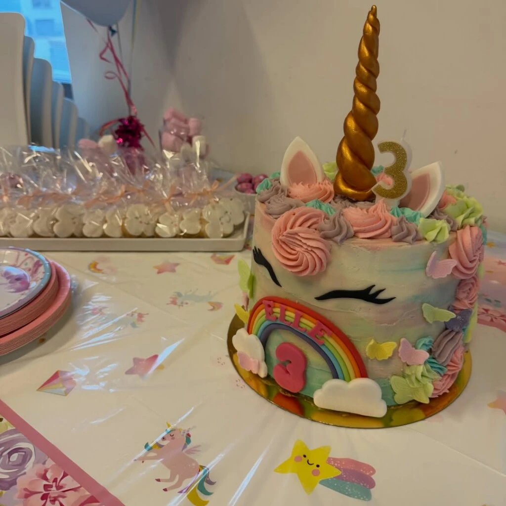 La decoración acompañó ese universo: globos, colores vibrantes y una torta de estilo unicornio que captó todas las miradas. Entre bailes, juegos y risas, la familia compartió momentos íntimos que rápidamente se transformaron en recuerdos inolvidables.