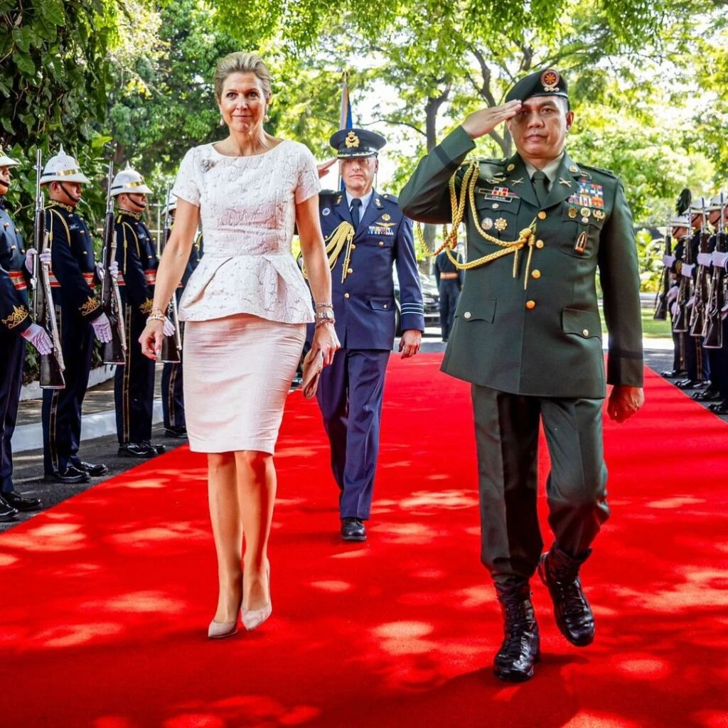 Como en cada gira por los países, Máxima aprovecha para lucir sus más destacados looks. Después de vestir un colorido y casual outfit, para visitar a algunos habitantes y recorrer el sector pesquero de la isla, la reina eligió un look más formal. Este fue utilizado durante su encuentro con Ferdinand Marcos Jr, presidente de Filipinas.