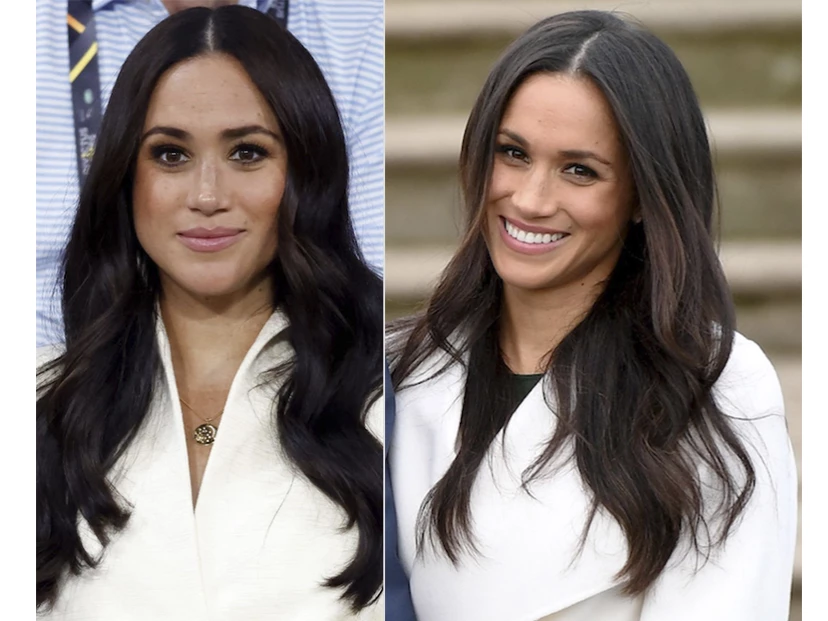 La esposa del príncipe Harry lucía el pelo largo, peinado con raya al medio y bien lacio. Incluso se pueden apreciar unas mechas cobrizas distribuidas entre su cabellera. Cabe recordar que tiempo atrás, solía llevarlo con más movimiento, en capas y un tanto más oscuro, según se tiene registro de sus últimas apariciones públicas.