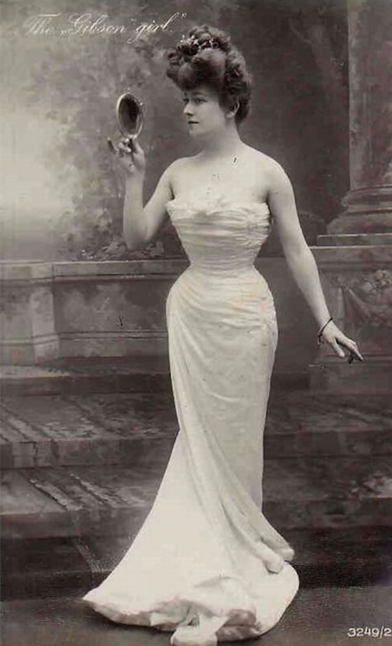 Y los corset que también abundaron anoche en la gala de los Premios Platino, posiblemente abunden en la fiesta de la moda. Estas prendas eran moneda corriente entre 1870 y finales de 1880: las mujeres los adoptaron para afinar sus siluetas. Hacia 1890, sin embargo, pasaron de moda, siendo reemplazados por las mangas abullonadas (mutton sleeves o gigot, en francés), las faldas acampanadas y los peinados estilo pompadour. Esta estética fue reflejada tiempo después por el ilustrador Charles Dana Gibson, creador de las Chicas Gibson que fueron muy populares en publicidades y avisos.
