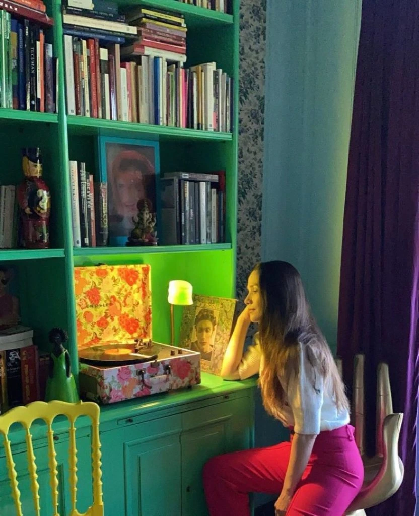 Se trata de una habitación -que funciona como biblioteca- y en el que, además de muchísimos libros, hay un tocadiscos.