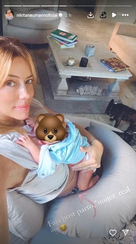 Por medio de sus historias de Instagram, Neumann se grabó desde la cama a las 7 de la mañana y con aspecto de cansada. "Cuando ya preparaste desayuno, diste la teta, y limpiaste lo del cachorro. A dormir un poco más", escribió en su cuenta personal. Sin embargo, horas antes, la modelo demostró que está muy agradecida con esta nueva etapa. "Mi estado favorito. Enamorada total", expresó en una imagen junto a su bebé.