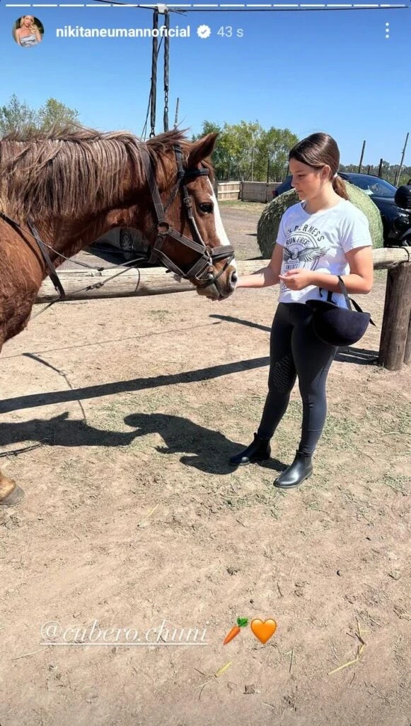 Además, la hija de Neumann se mostró alimentando al equino y posteriormente dándole un baño. En esta oportunidad, no estuvieron sus hermanas Indiana y Allegra, quienes tuvieron un día de pileta con amigos.