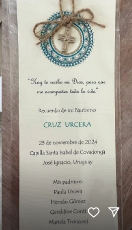 También mostró las estampitas que entregará a cada invitado, donde se detalle quiénes son los padrinos de Cruz, entre los cuales figura Gegé Neumann por parte de Nicole, tal como ya se había revelado hace un tiempo.