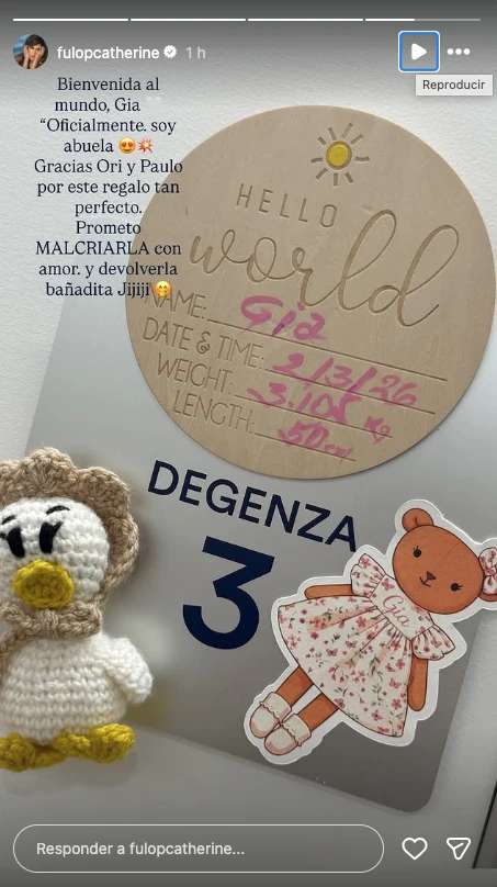 “Bienvenida al mundo, Gia. Oficialmente soy abuela”, escribió la actriz junto a una imagen con los datos de nacimiento de la bebé. Fiel a su humor y calidez, agregó: “Prometo malcriarla con amor y devolverla bañadita”, dejando ver la felicidad que atraviesa a toda la familia.