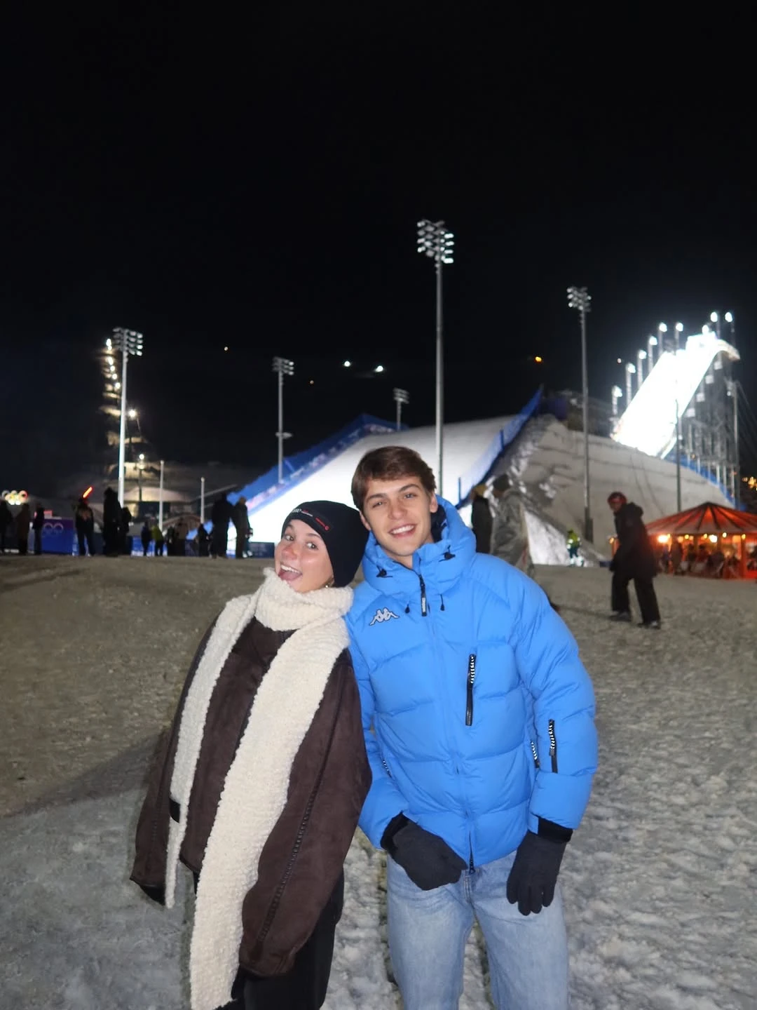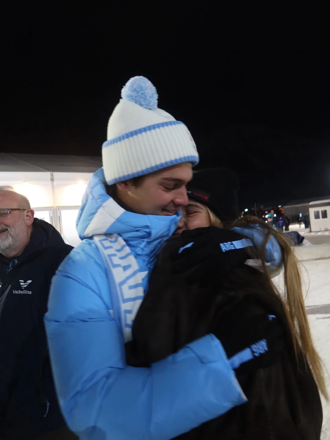 La jornada estuvo atravesada por gestos de cariño y complicidad entre hermanos. Tras la ceremonia, la familia posó unida con la bandera argentina bajo las luces del predio olímpico, con los anillos olímpicos de fondo. Fue una imagen que condensó pertenencia, orgullo y celebración.