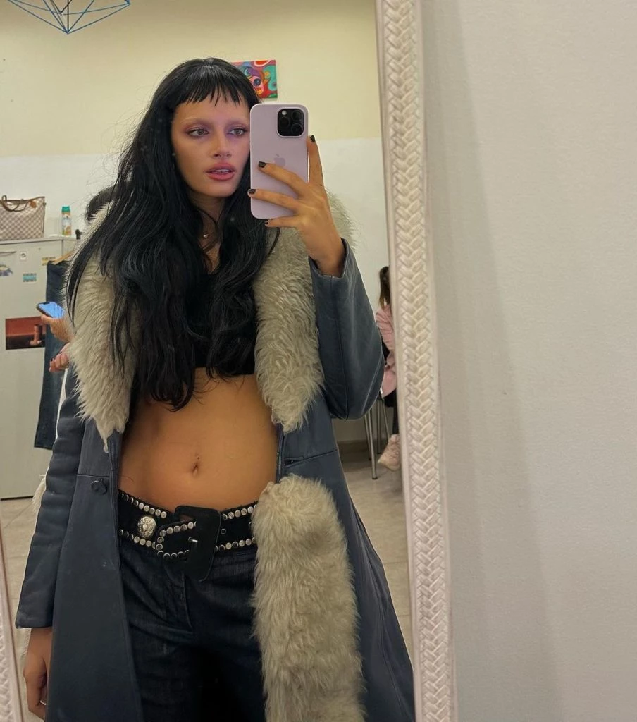 En otra de las imágenes compartidas por Oriana, luce un pantalón de jean tiro bajo en tono azul, un top negro y un sobretodo de jean con pieles. Además, lleva esmalte de uñas negro, marcando un estilo gótico o más rockero, diferente a lo que tenía acostumbrado a sus fans.