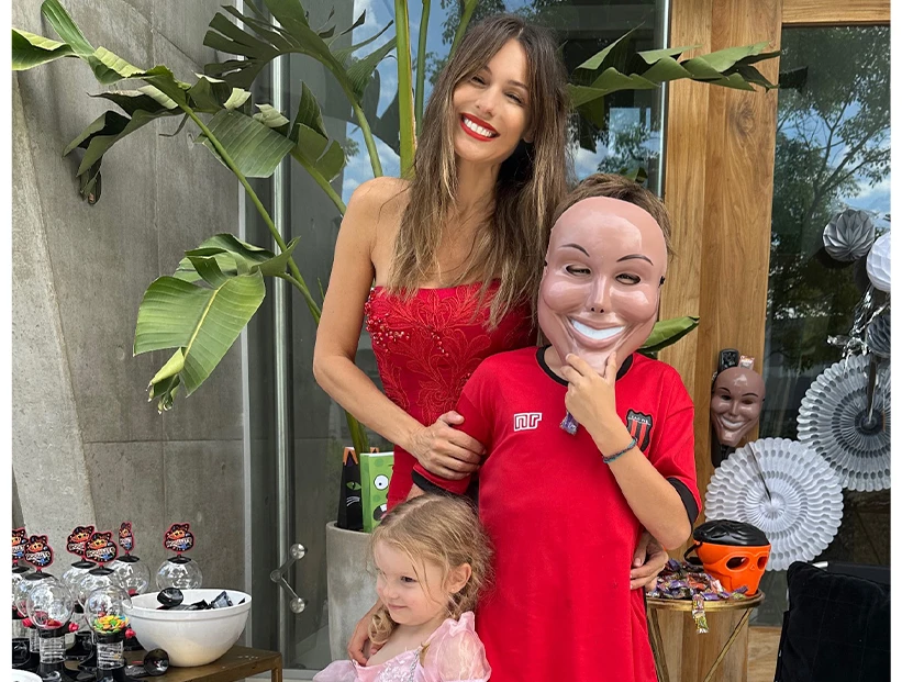 La modelo, recientemente separada de Roberto García Moritán, armó una recepción de dulces, donde sus hijos menores -Ana García Moritán, Benicio y Beltrán Vicuña- compartieron caramelos con los niños vecinos.