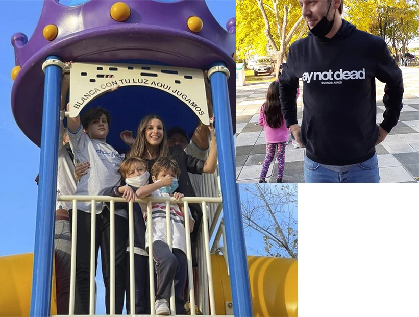 En este sentido, y a casi nueve años de la partida de la pequeña, hoy la ex pareja se reencontró con motivo de la inauguración de una plaza en Pilar que llevará el nombre de su hija y que será un espacio para que disfruten los niños del Hogar Santa Marta de esa localidad. “Blanca, con tu luz aquí jugamos”, reza un cartel en uno de los juegos.