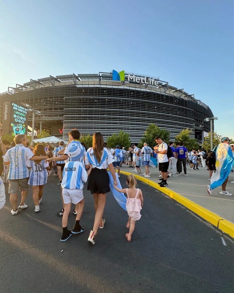 Este martes 25 de junio, Carolina "Pampita" Ardohain sorprendió al viajar con sus hijos a los Estados Unidos. La modelo quiso presenciar el partido de Argentina contra Chile que se disputó en el MetLife Stadium, ubicado en Nueva Jersey. A través de las redes sociales, la mujer compartió las postales alentando a la Albiceleste.
