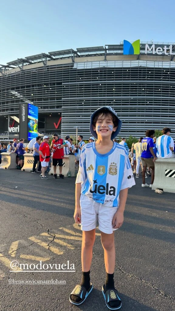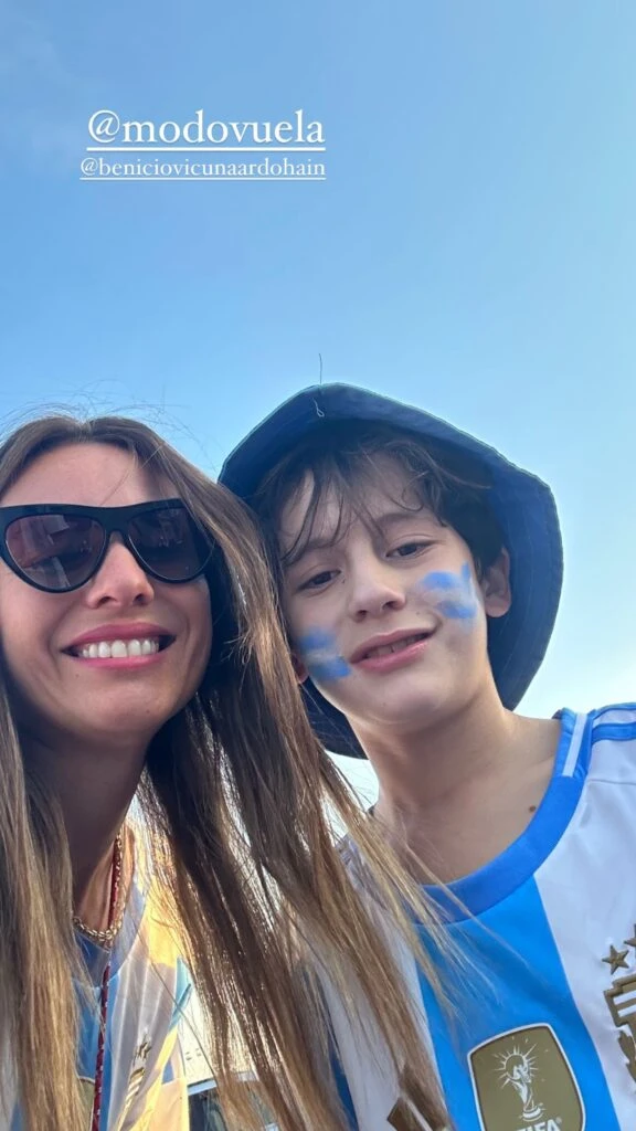 Acompañada de Ana Moritán y de Benicio Vicuña, Pampita se mostró muy feliz de poder estar presente en la fiesta de la Copa América. En las imágenes compartidas, el niño aparecen luciendo las camisetas argentinas, llevando una bandera y con el rostros pintado. Ambos posaron frente al estadio y disfrutaron de la previa del partido.