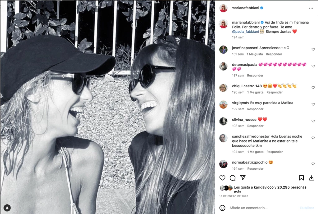 Hace un tiempo, fue la misma Mariana quien se encargó de presentarla mediante una tierna foto. "Así de linda es mi hermana Polín. Por dentro y por fuera. Te amo Paola Fabbiani. Siempre juntas", escribió la conductora y dejó ver la hermosa relación que tienen.