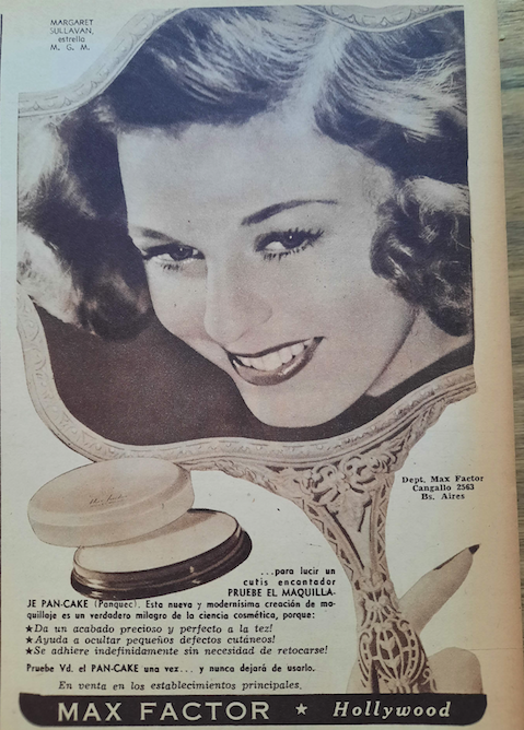 Seguimos recorriendo los años ´40 y observando cuáles eran los productos que se ofrecían y para qué servían: el spray o laca para el cabello era un imprescindible, dado que los rulos se imponían como tendencia y quienes no los tenían naturalmente se los marcaban y necesitaban sostenerlos a lo largo del día.