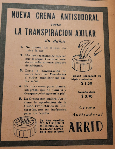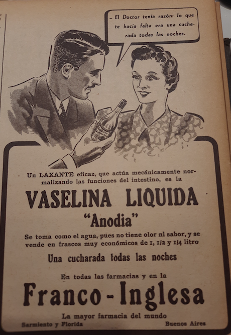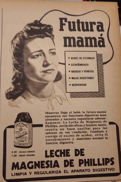 Las cremas "antisudorales" para la higiene, los productos para el estreñimiento y la nutrición con malta eran otros productos muy publicitados de la época, así como la leche de magnesia que se promocionaba para atenuar los malestares del embarazo.