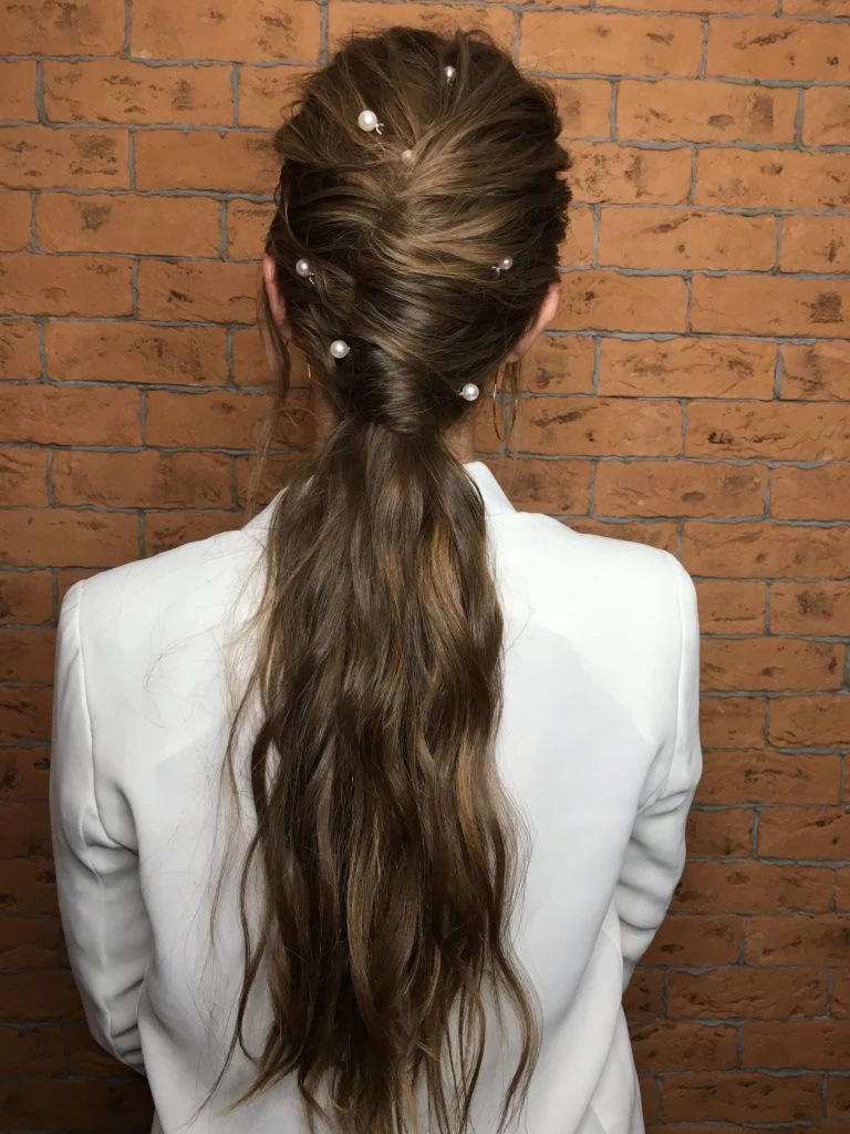 Las horquillas con perlas se suman a todo tipo de peinados: podés intercalarlas en un rodete, en una trenza floja a media altura, con el pelo suelto o incluso en un semi recogido hecho con una torzada.