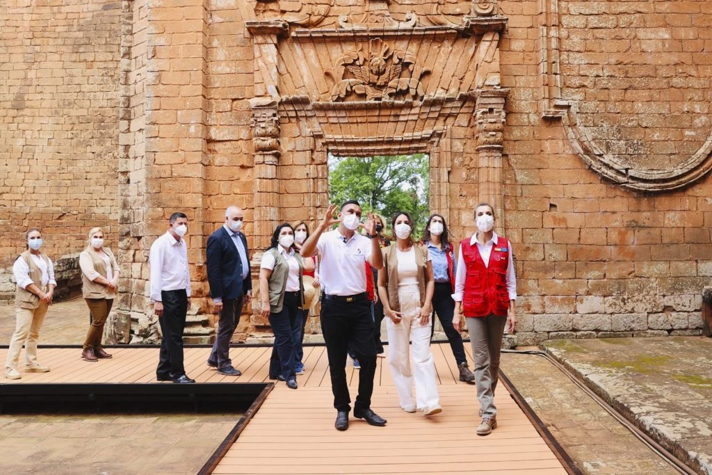 Tras asistir a la Escuela Taller de Encarnación (un centro de formación y capacitación laboral para jóvenes de escasos recursos y en situación de vulnerabilidad) se instaló en el Hotel Awa Resort de Encarnación, donde descansó y almorzó. Luego continuó con su agenda: una visita a las misiones jesuíticas de Santísima Trinidad y Jesús de Tavarangué, las reducciones que fueron declaradas patrimonio de la humanidad por la Unesco en 1993 y que forman parte de las 30 misiones que estableció la compañía de Jesús en Sudamérica durante los siglos XVII y XVIII.