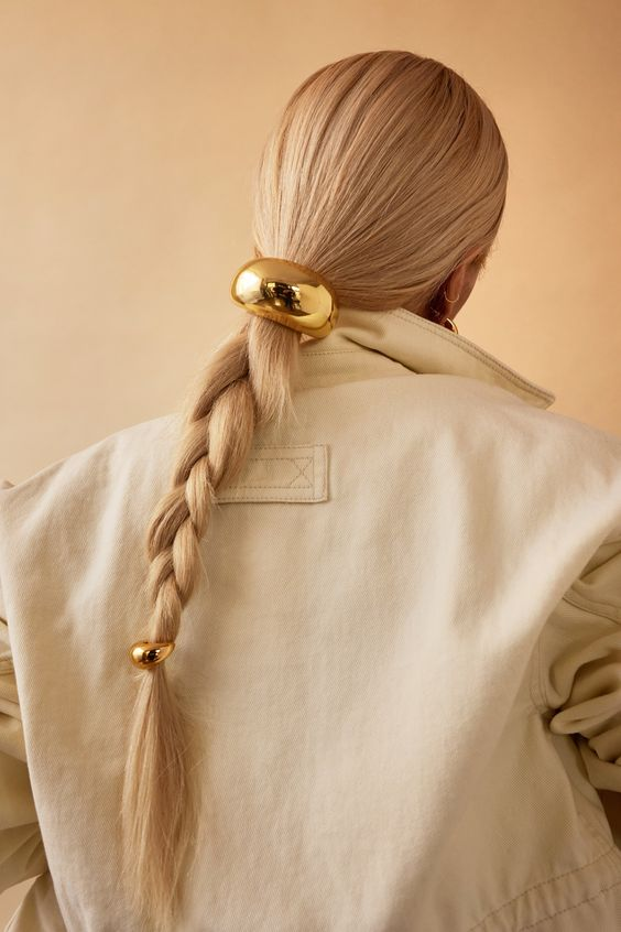 Si te gustan las trenzas, podés incorporar este accesorio en la base de la trenza para darle un giro único y moderno. Este look es ideal para eventos donde quieras destacar.