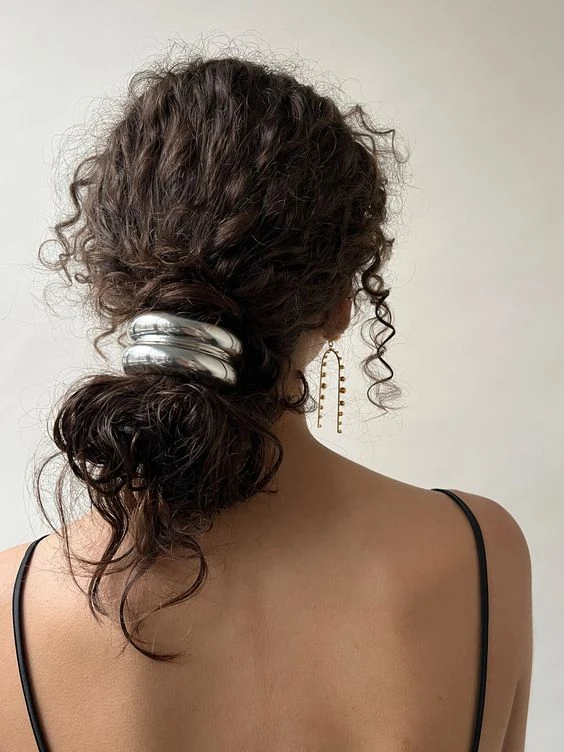El pony cuff es un accesorio para el pelo diseñado específicamente para elevar tus recogidos. Se trata de una especie de "pulsera" que se coloca alrededor de la base de la colita de pelo, cubriendo la gomita y proporcionando un acabado pulido y elegante. Disponible en una variedad de materiales y estilos, desde metálicos brillantes hasta diseños en cuero, el pony cuff puede adaptarse a cualquier ocasión, desde una salida casual hasta un evento formal.