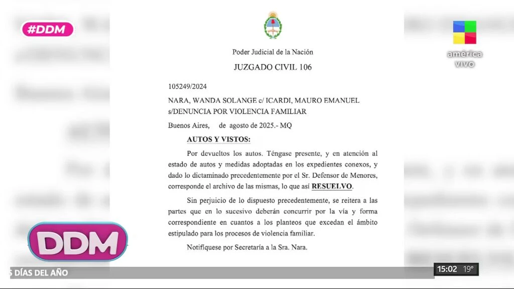 El expediente se tramitó en los juzgados de familia, que tienen competencias limitadas. El juez resolvió archivar la causa al considerar que no era posible dictar medidas cautelares, como una prohibición de acercamiento o un botón antipánico. Uno de los argumentos fue que Icardi reside en Turquía, lo que vuelve impracticables esas disposiciones.