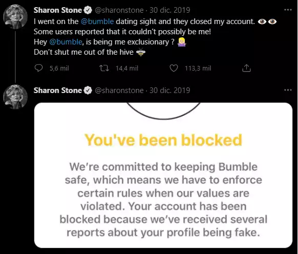 Los tuits de la actriz fueron compartidos miles de veces y muchos se mostraron interesados en tener una cita romántica con ella. Por supuesto, la aplicación acabó restableciendo la cuenta de Stone. "La hemos desbloqueado y le aseguramos que no volverá a suceder", le comunicó un ejecutivo de Bumble en Twitter.
