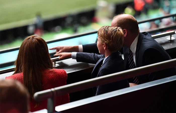 El príncipe George tuvo su primer compromiso oficial con sus padres -y sin compañía de sus hermanos- participando como hincha de honor en el partido de Inglaterra contra Alemania. A punto de cumplir 8 años, George apareció vestido con un atuendo muy formal y similar al de su papá. Es que el mayor de los nietos de Lady Di está comenzando a tomar un papel más activo y esta aparición podría marcar el inicio de una nueva etapa en su vida, teniendo en cuenta que es el tercero en la línea de sucesión al trono.