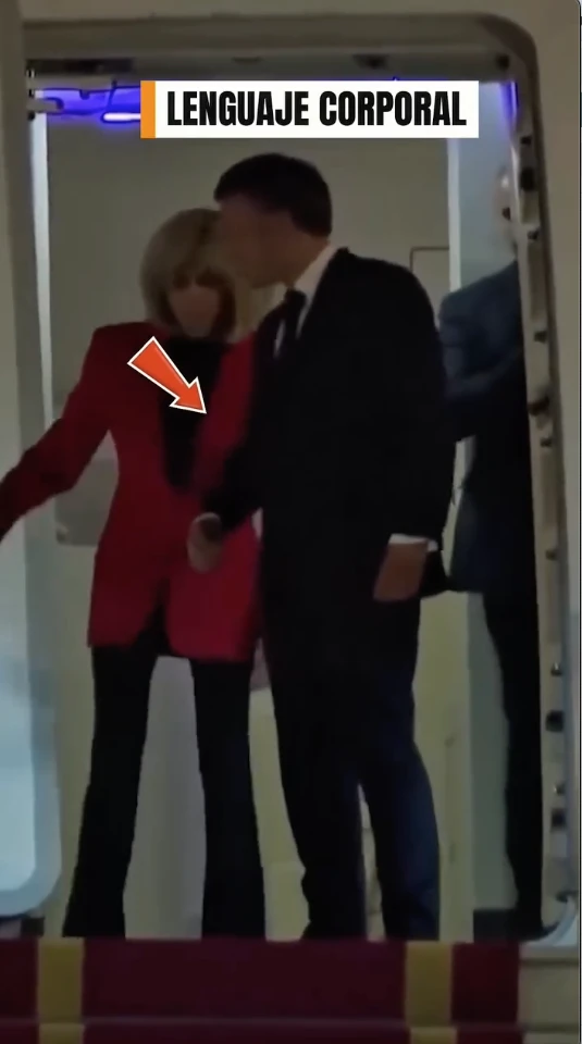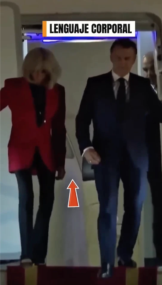 Otro detalle llamativo en la escena es la interacción física. Macron le extiende el brazo a su esposa como gesto de cortesía para ayudarla a bajar la escalera del avión, pero Brigitte lo ignora por completo. Este acto, sutil pero evidente, indica un rechazo en el plano corporal.