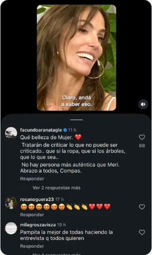 Luego, reforzó su apoyo con otra frase que apunta a la esencia de Susini: “No hay persona más auténtica que Meri. Abrazo a todos compas”, dijo en el posteo que compartió el periodista Fede Flowers en sus redes.