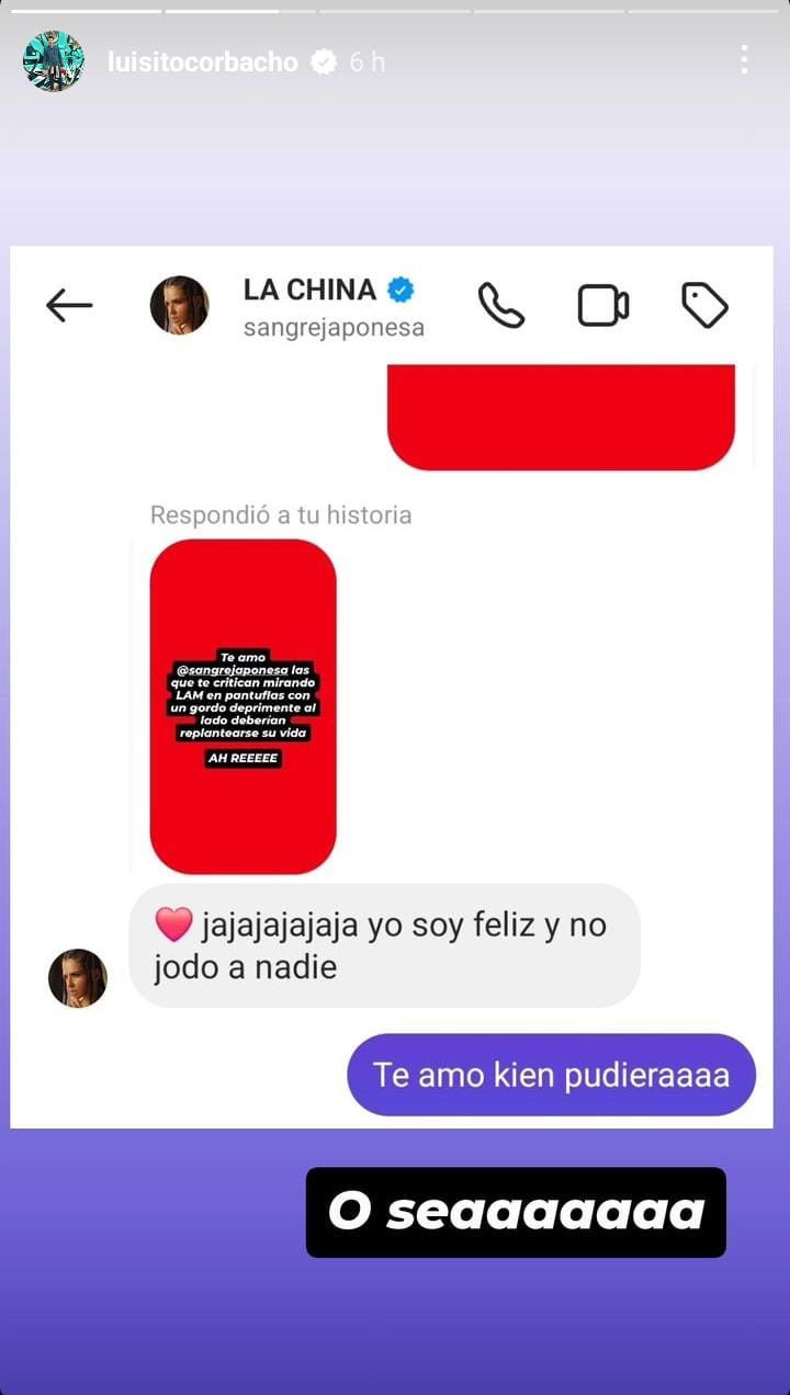 Sorpresivamente la China no se quedó callada y respondió ante la provocación de los usuarios en internet. "jajajaja soy feliz y no jodo a nadie", fue su sencilla respuesta, dejando en claro que no le afectan las críticas.