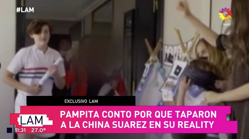 Con respecto a la imagen de la China Suárez blureada en "Siendo Pampita", la modelo expresó: "Eso dijo Ángel, era el cumple de mi hijo, aparecemos todos, pero blureamos a todos porque los únicos que están autorizados para aparecer somos los que participamos del reality".