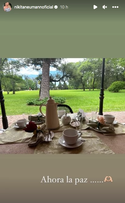Desde la galería sacó una foto en la que se ve la mesa lista para el desayuno. "Ahora la paz...", escribió.