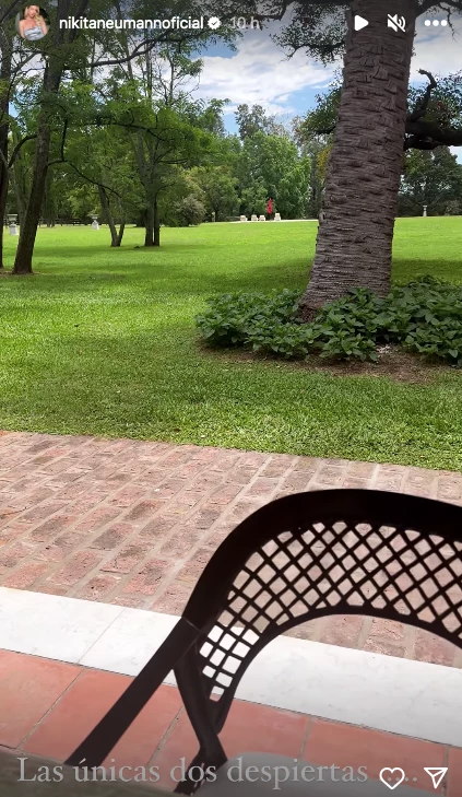Nicole que está de doce semanas de embarazo y se supo que espera un varón, se levantó antes que nadie: "Las únicas dos despiertas", escribió sobre un video en el cual hace un paneo por el lugar desde una galería, y muestra a su perrita que la acompañó en la ceremonia.