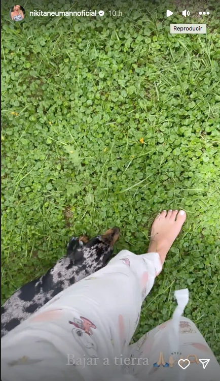 Y por último subió otro video en la que se ve caminando descalza sobre el césped, junto a su fiel mascota, y en pijama. "Bajar a tierra", escribió.