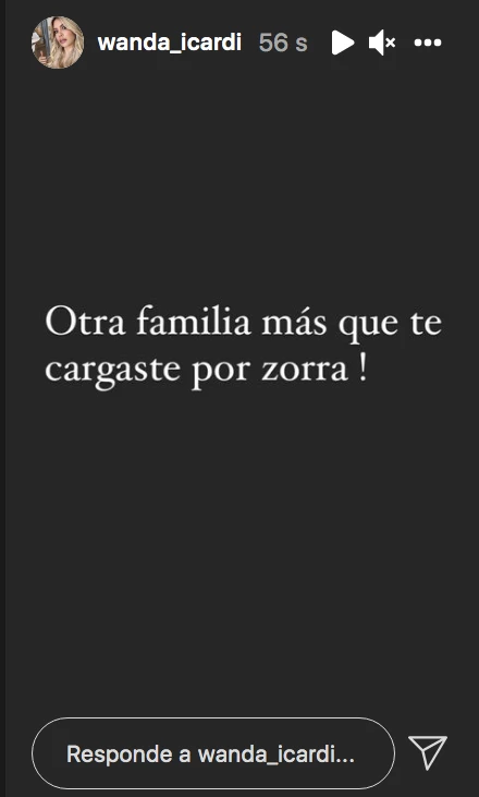 A eso de las 15, Wanda Nara sorprendió a sus seguidores con un posteo en sus stories. "Otra familia más que te cargaste por zorra", decía. Pero a los minutos lo borró. Además dejó de seguir a su marido, Mauro Icardi.