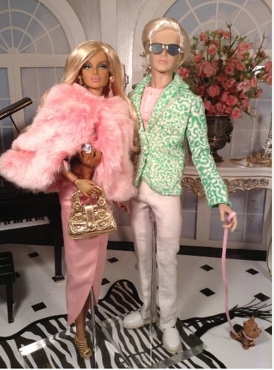 Este muñeco se creó con la intención de ejemplificar la moda de Palm Beach, según Mattel . Canalizando el estilo tropical de diseñadores como Trina Turk y Lilly Pulitzer, el outfit de Sugar Daddy Ken incluía un blazer verde con estampado de damasco, una camisa rosa abotonada y pantalones blancos con pliegues. Su pelo rubio dorado se tiñó de gris y, a diferencia de muchos muñecos Ken, venia con un accesorio especial: un perro de juguete con una correa de color rosa intenso.