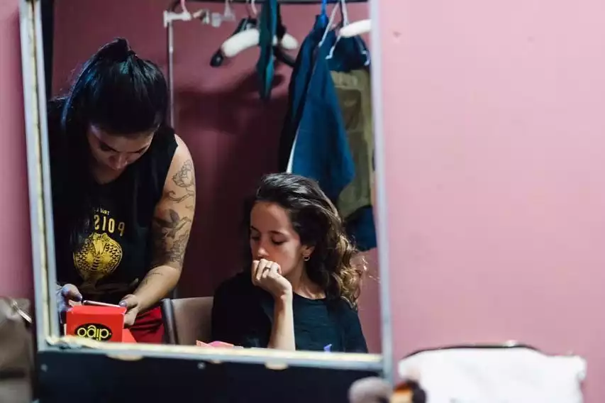 Ana Laura viaje siempre junto a su hermana y a todo el equipo de producción, ya sea para una gira o para grabar un video clip, no solo para maquillarla sino también para estar junto a ella.