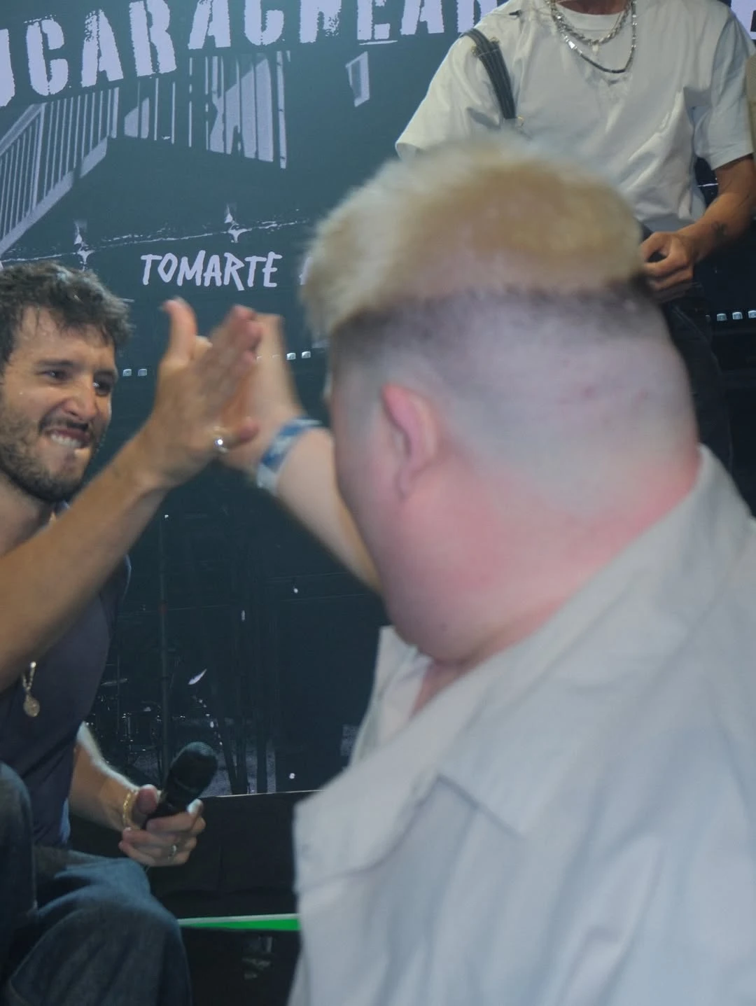 El artista lo presentó ante el público con un mensaje cargado de emoción, destacando su energía y su manera de transmitir alegría. Segundos después, Alonso apareció en el escenario y el estadio entero lo ovacionó.