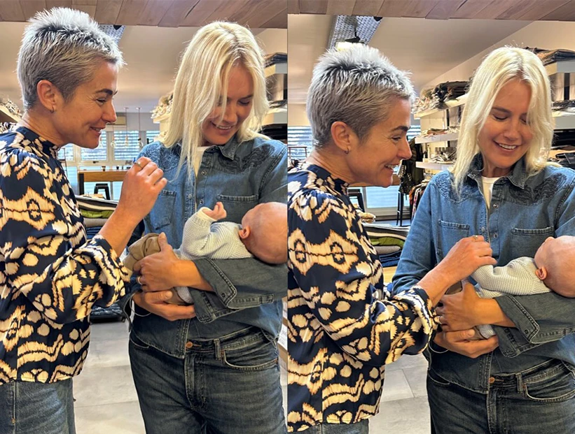 “La abuela y la tía abuela muertas de amor”, escribió Valeria para acompañar la imagen, en la que ambas posan sonrientes y felices con el bebé en brazos.