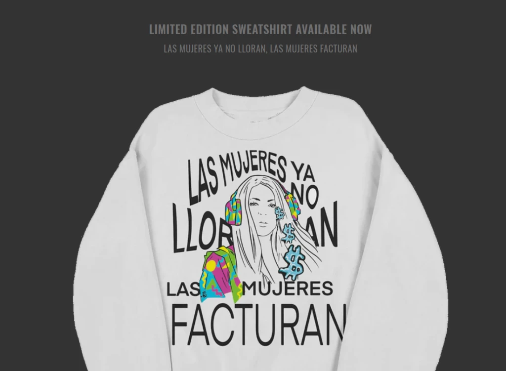 Quien está detrás del diseño es Isabella, la sobrina de la cantante, que es artista y tiktoker. Y pensó en hacerle caso a su tía: "Las mujeres ya no lloran, las mujeres facturan", logrando que la prenda se agotara a solo un rato de haberla puesto a la venta.