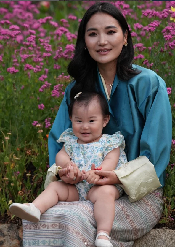 Para celebrar su cumpleaños se realizó una foto oficial junto a su marido y sus tres hijos, sus tres hijos, los príncipes Jigme Namgyel (8), Jigme Ugyen (5) y la pequeña Sonam Yangden (1). La foto, tomada en un monasterio budista en el corazón del Himalaya que también sirve como sala del trono y despacho del rey, muestra a la familia real vistiendo el atuendo tradicional (kira para las mujeres y gho para los hombres) que casi nunca se quitan incluso cuando viajan a occidente de manera oficial.