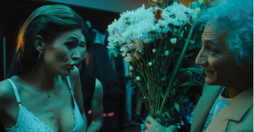 Coppola queda flechado por la mujer, secuencia que en la serie hace hincapié en el esfuerzo que hace por llamar su atención. Toma todas las flores que puede del lobby para improvisar un ramo que le sirva como excusa para hablarle. La joven rechaza el obsequio mientras le explica que no acepta regalos de extraños. Coppola continúa adelante y le entrega el ramo a su amiga Karina Rabolini (interpretada por Mery del Cerro) para salir del aprieto de la situación.