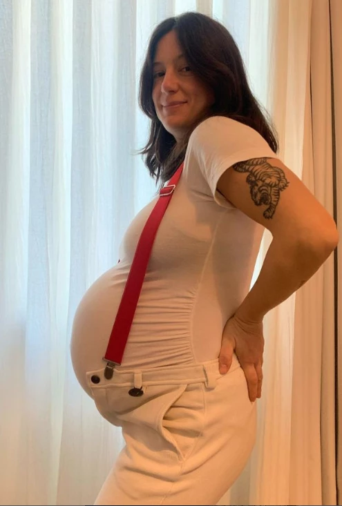 Yo en tu lugar estaría indignada. Una birra de más o un plato de fideos con tuco de más que te comes, que le estás dando duro y parejo, y ya tienen que decir que estás embarazada", sostuvo su alter ego, a lo que Pichot responde "hay una cosa que no te dije" y muestra su panza de pocos meses de embarazo.