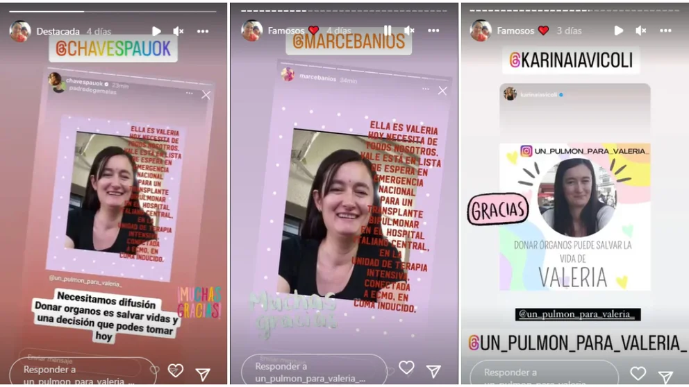“Un pulmón para Valeria”, es el lema de la campaña que se viralizó en redes sociales desde hace días mientras que la paciente espera -integrando la lista de espera nacional del INCUCAI- el órgano internada en la Unidad de Terapia Intensiva del Hospital Italiano de Buenos Aires.