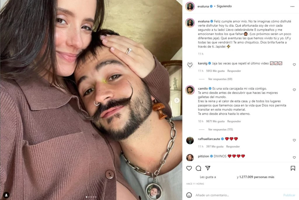 Además, Evaluna - que está en la recta final de su embarazo- le dedicó un tierno posteo en sus redes sociales que incluyó una romántica imagen y un romántico mensaje. "Feliz cumple amor mó. No te imaginás cómo disfruté verte disfrutar hoy tu día. Qué afortunada soy de vivir cada segundo a tu lado", escribió la actriz.