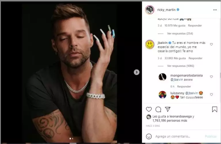 Uno de ellos fue el reguetonero J Balvin, quien en un comentario escribió: "Tú eres el hombre más especial del mundo, yo me casaría contigo!! Te amo", se solidarizó con el boricua.