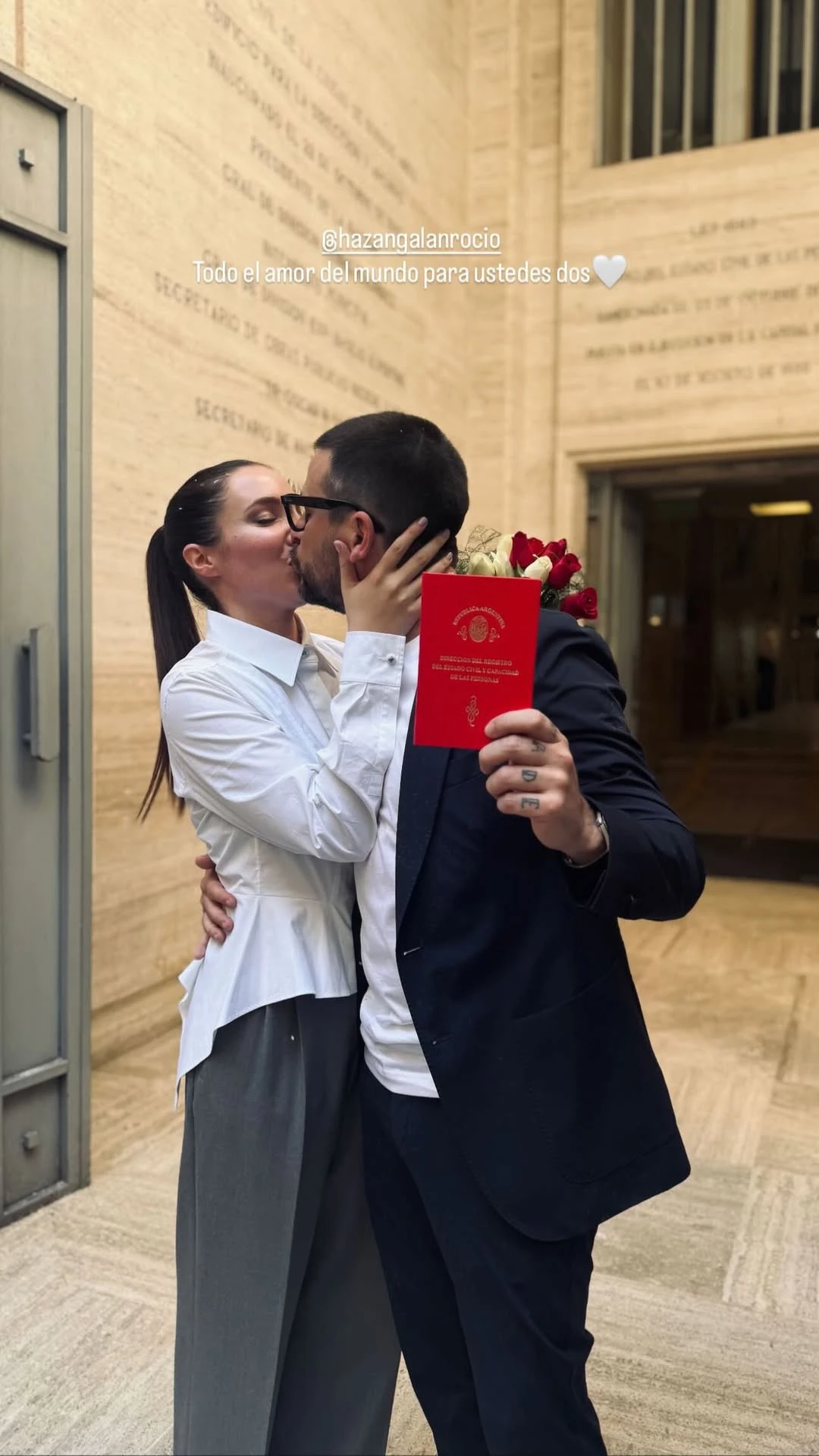 Rocío Hazán, hija de Lucía Galán y del empresario Alberto Hazán, dio el primer paso hacia su boda al casarse por civil con Damián Aramendi.