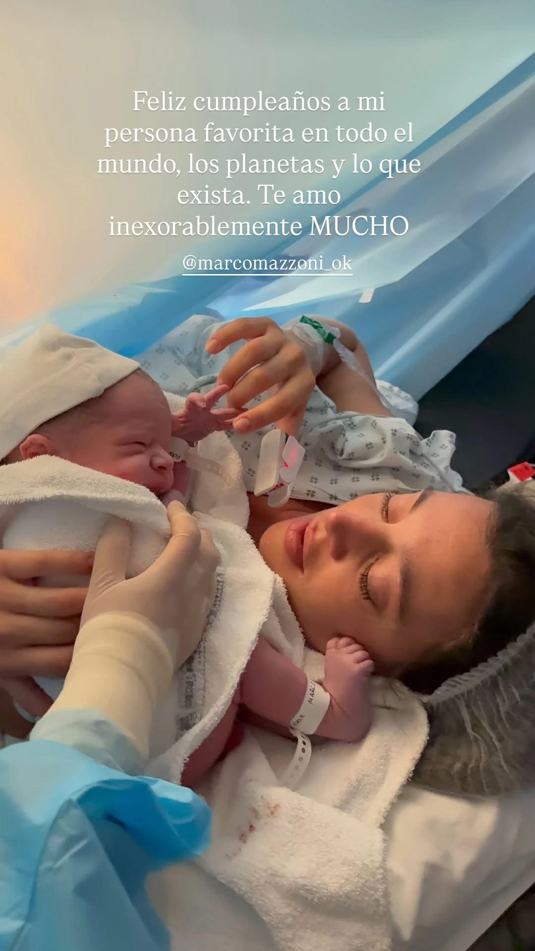 “Feliz cumpleaños a mi persona favorita en todo el mundo, los planetas y lo que exista. Te amo inexorablemente MUCHO”, expresó por medio de la red social Instagram. En la imagen se puede ver el primer contacto de la madre y su bebé, una postal tan conmovedora como perfecta.