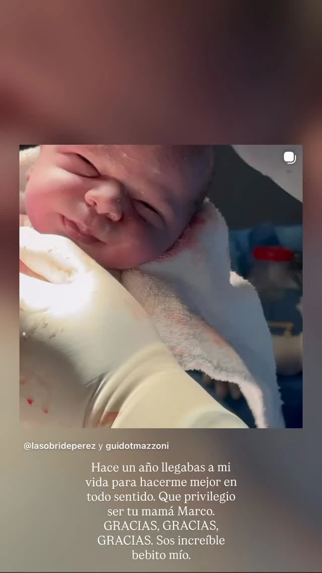 En otra de las fotografías, recordó otros instantes del parto en el que estuvo acompañada por su pareja Guido. "Hace un año llegabas a mi vida para hacerme mejor en todo sentido. Qué privilegio ser tu mamá Marco. GRACIAS, GRACIAS, GRACIAS. Sos increíble, bebito mío", destacó reflejando la felicidad de este día.