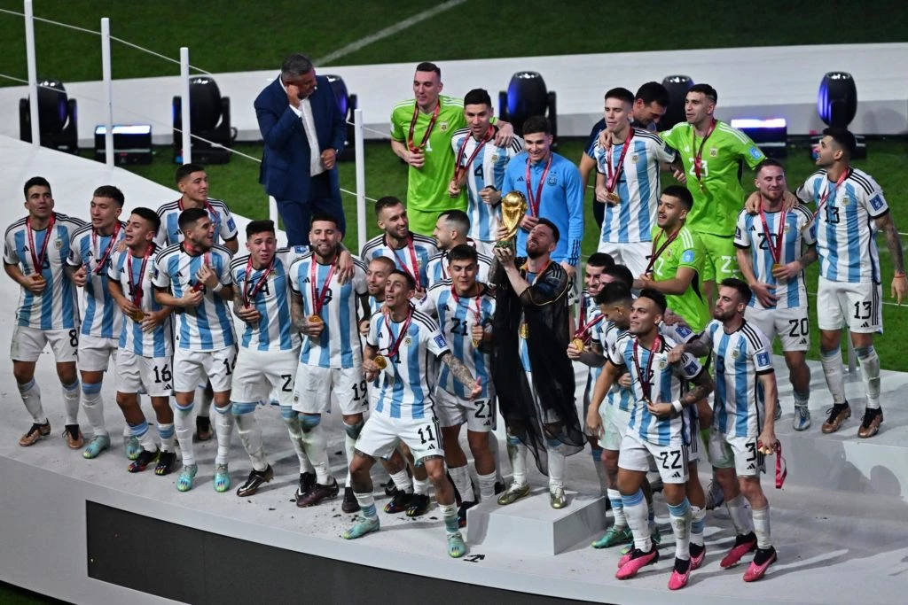 La selección argentina liderada por Lionel Messi acaba de consagrarse campeona del mundo tras la sufrida y épica victoria por penales a Francia. Después del partido, que se terminó ganando por penales, los 26 héroes y el director técnico Lionel Scaloni fueron premiados: recibieron las medallas de oro y luego alzaron la copa del mundo. La tercera para Argentina, que ya la había conseguido en 1978 y en 1986.