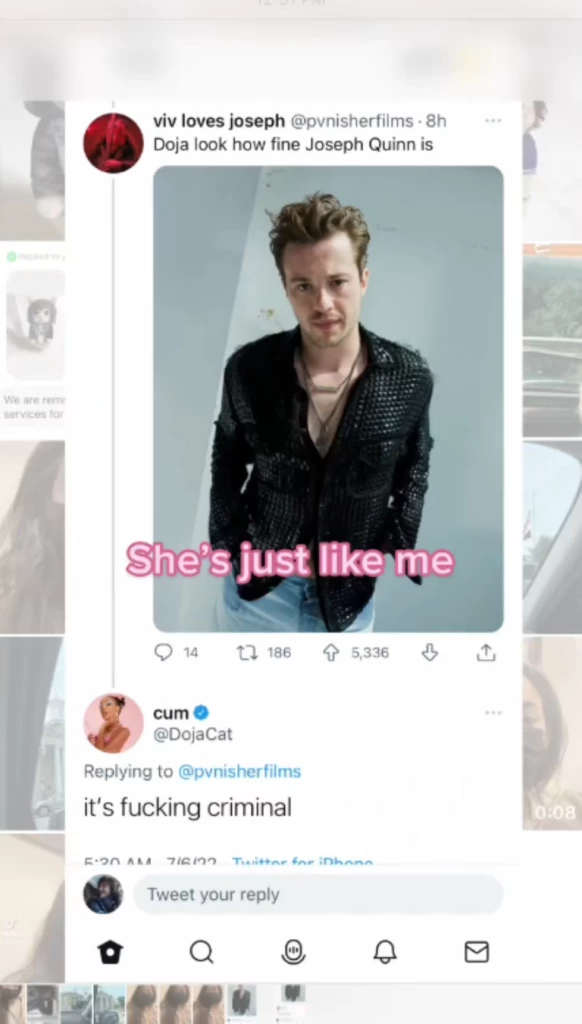 Ya previo a que Noah revelara su intercambio de palabras con la artista, ella misma había dado indicios de su interés por el británico cuando una fanática le envió por Twitter una foto del actor acompañado de la frase “Doja mira lo lindo que es Joseph Quinn” a lo que la cantante le respondió “es jodidamente criminal”.
