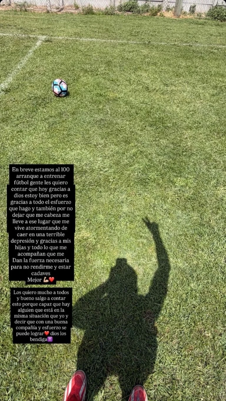 El joven contó que comenzó a entrenar de nuevo y a practicar fútbol con sus amigos, después de muchos meses sin actividad. "Estoy bien gracias a todo el esfuerzo que hago y por no dejar que mi cabeza me lleve a ese lugar que me vive atormentando de caer en una depresión terrible", comentó en sus redes.